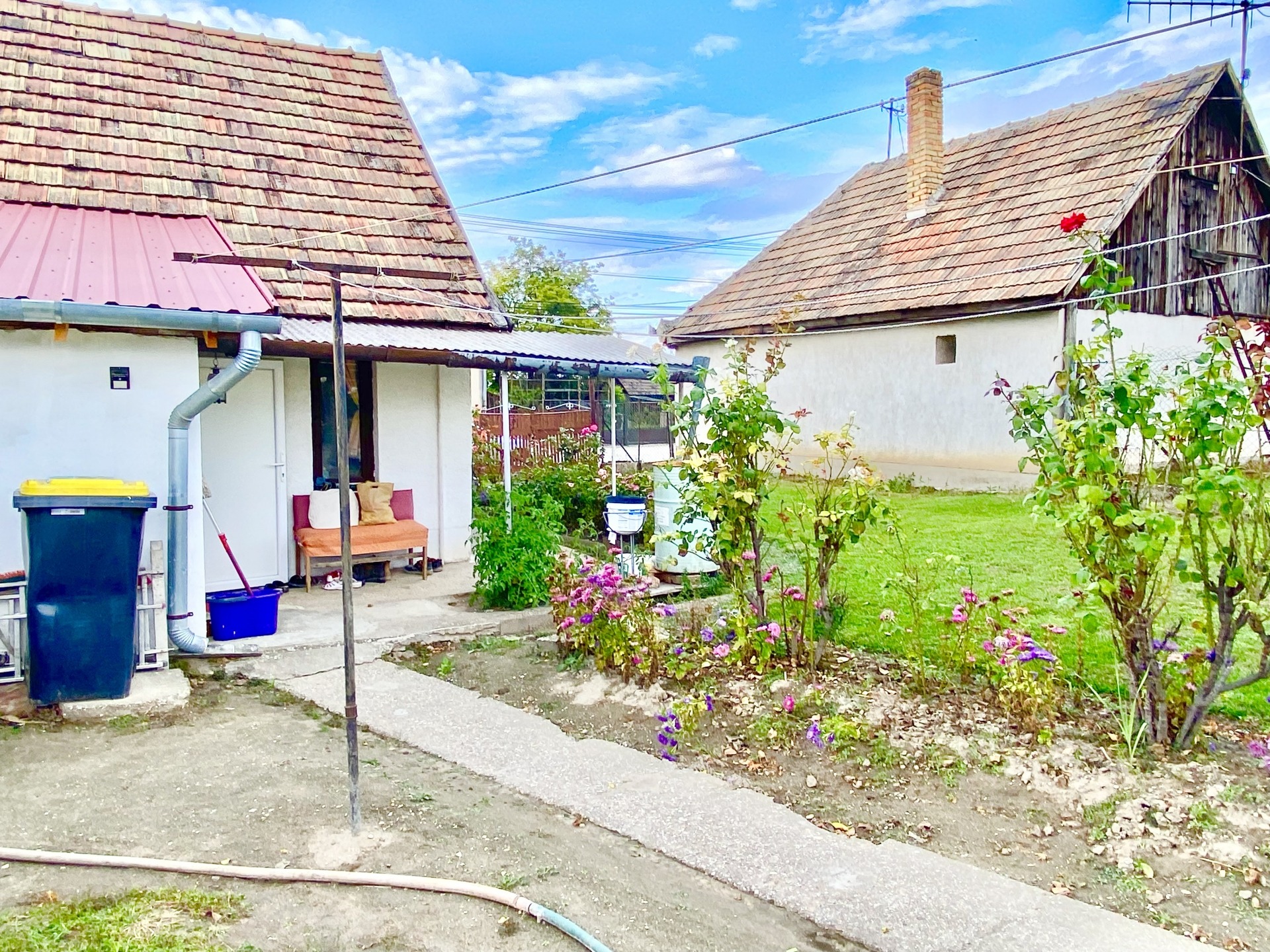 Külön érdekesség, hogy a nappali vályogtéglából készült, ami nemcsak stílusos, de teljesen száraz is, így tökéletesen alkalmas a pihenésre és a családi együttlétekre.