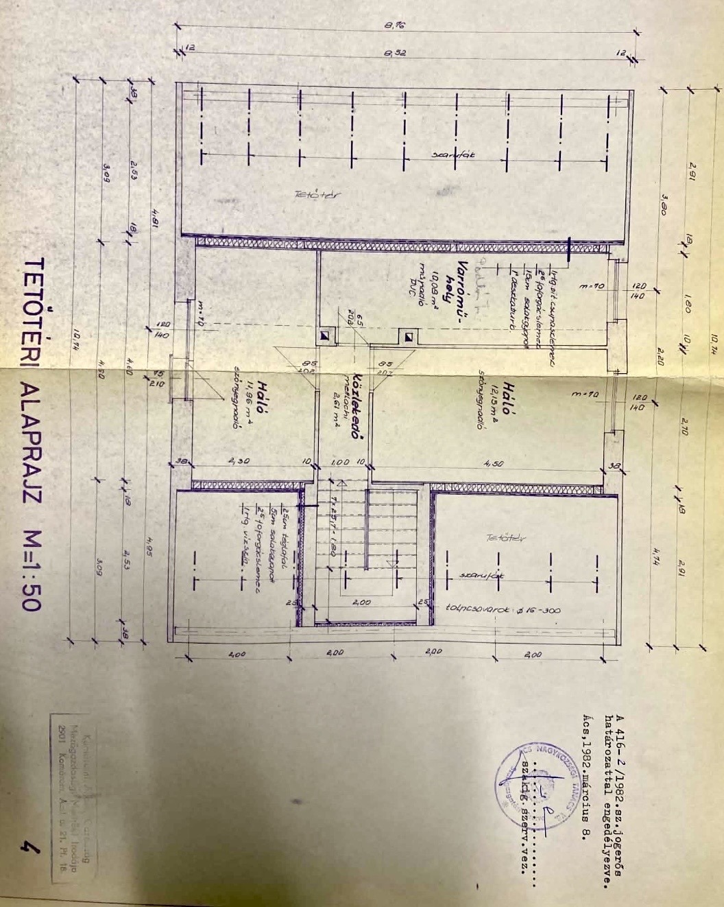 - alapozása: 30 cm széles és 80 cm mély betonos alappal rendelkező, azon 2 rétegű szigetelés C 150-es lemezzel