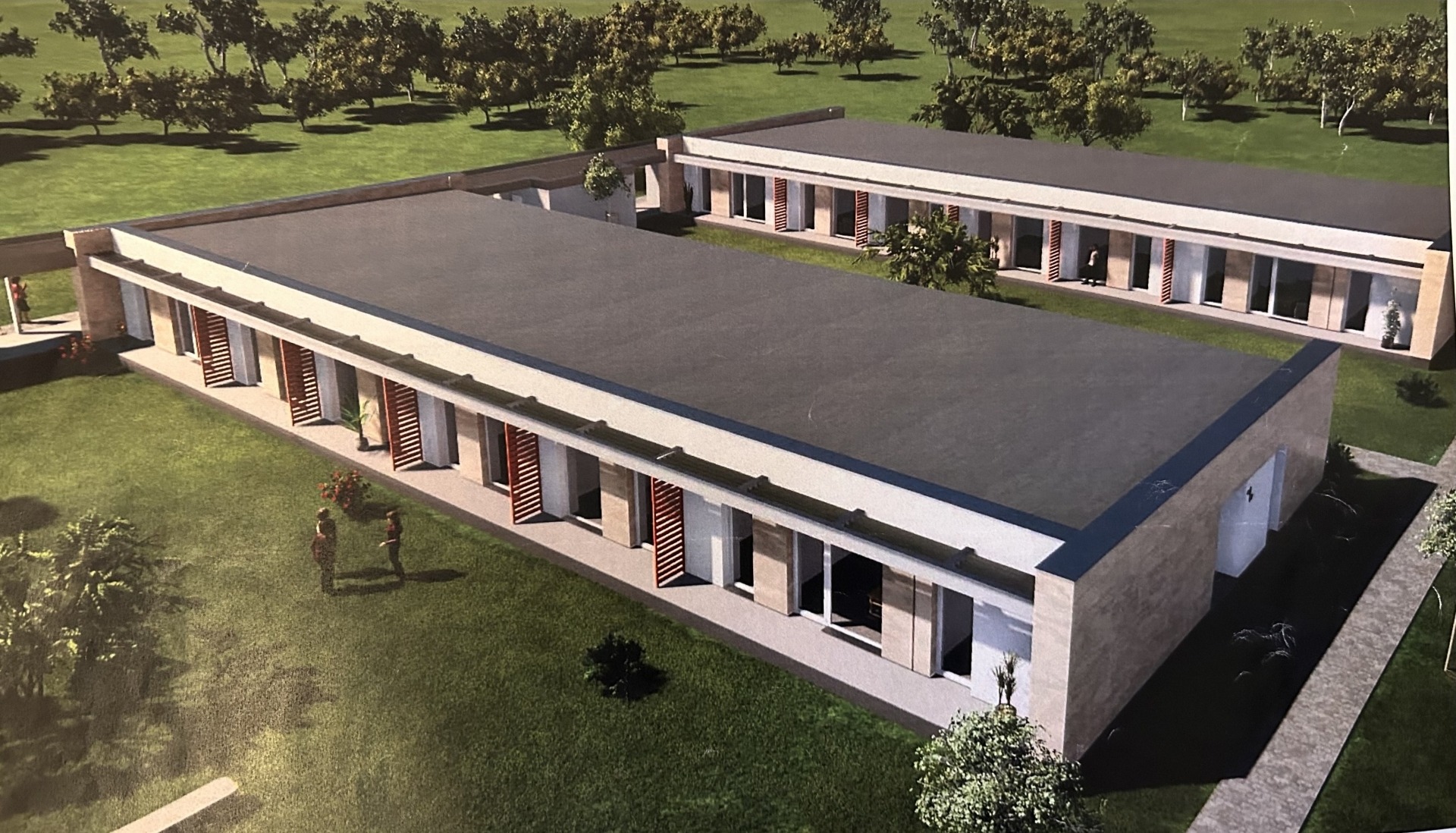 A projekt megálmodásakor arra törekedtek, hogy az épületek és az zöldterület harmonikus egységet alkossanak.